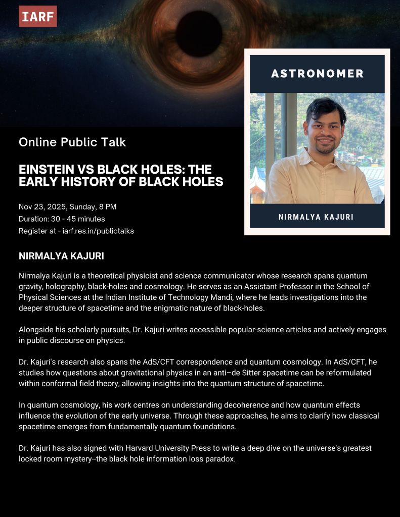 Speaker: Nirmalya Kajuri, IIT Mandi